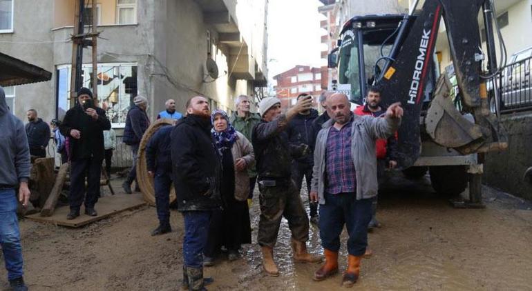 Gündoğdu mahallesinde boşaltılan binalarda yaşayan Uğur Navdar ise, “Bina bizimdi, yukardan bir heyelan geldi. Yol kapandı yolun suyu bu sefer aşağı doğru akmaya başladı. Tedbirden evde yaşayan kiracıları çıkarttık. Geceden beri buralarda uğraşıyoruz. Evin içerisine su girdi. Şuanda durum bu” diye konuştu.
